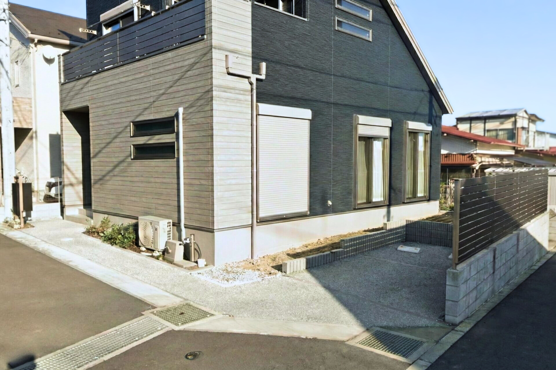 座間市の新築外構|平坦地の水はけ問題を解消。愛犬と暮らす、機能美クローズ外構